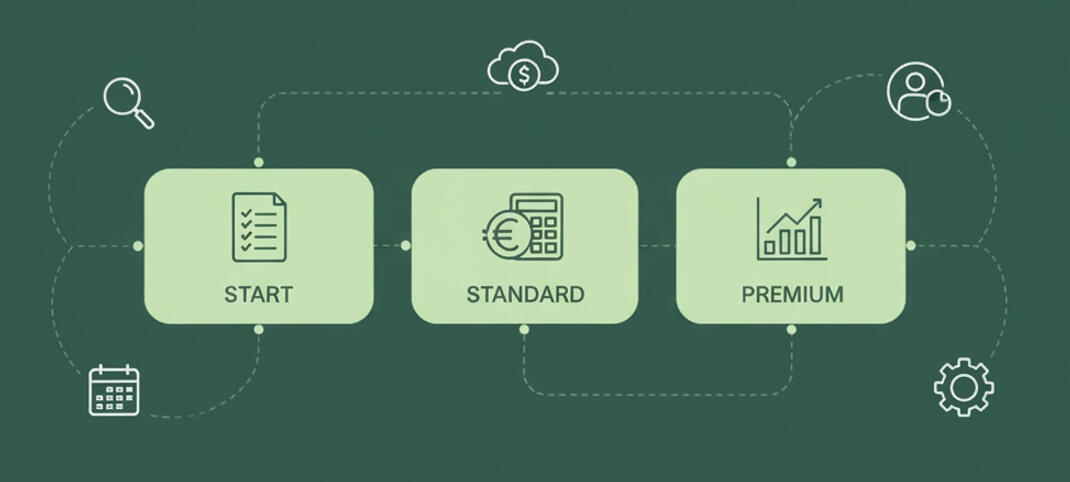 Svjesni smo da je svaki posao priča za sebe, s jedinstvenim izazovima, ciljevima i potrebama.Upravo zato ne vjerujemo u univerzalna rješenja.Naši paketi usluga – START, STANDARD i PREMIUM – nisu fiksno definirani cjenici, već smjernice koje nam pomažu da zajedno s Vama izgradimo savršen plan podrške za Vaše poslovanje.Naš Pristup: Partnerstvo i Transparentnost na Prvom MjestuNaš cilj nije samo ispuniti zakonske obveze, već postati Vaš pouzdan partner u financijskom upravljanju. Proces započinjemo otvorenim razgovorom. Kroz uvodni sastanak želimo detaljno upoznati Vas i Vaše poslovanje:• Vašu djelatnost i specifičnosti tržišta na kojem poslujete.• Vaše kratkoročne i dugoročne poslovne ciljeve.• Trenutni opseg posla i planirani rast.• Izazove s kojima se susrećete.Tek nakon što u potpunosti razumijemo Vaše potrebe, zajednički definiramo opseg usluga i kreiramo ponudu. Na taj način osiguravamo da plaćate isključivo ono što Vam je zaista potrebno, bez skrivenih troškova i nepotrebnih stavki.Što Utječe na Formiranje Vašeg Individualnog Paketa?Cijena i opseg usluga formiraju se na temelju nekoliko ključnih faktora:• Pravni oblik: (j.d.o.o., d.o.o., obrt, udruga)• Sustav PDV-a: (mjesečni, tromjesečni obveznik ili izvan sustava)• Broj zaposlenih: (obračuni plaća, ugovori, prijave i odjave)• Opseg dokumentacije: (broj ulaznih i izlaznih računa, izvoda i sl.)• Specifične potrebe: (putni nalozi, robno-materijalno knjigovodstvo, uvoz/izvoz, financijsko izvještavanje prema upravi, itd.)Okvirni Opis Paketa Kao Polazna Točka:Iako je svaki paket prilagođen Vama, evo što naši standardni okviri najčešće obuhvaćaju:START Paket: Idealan za paušalne obrtnike, nove poduzetnike i manje tvrtke s jednostavnijim poslovnim procesima. Fokusiran je na zadovoljavanje svih temeljnih zakonskih obveza i pružanje osnovne podrške.STANDARD Paket: Najčešći odabir za rastuće tvrtke i obrte koji su u sustavu PDV-a i imaju zaposlene. Ovaj paket pokriva sveobuhvatno knjigovodstvo, obračun plaća i redovito porezno savjetovanje.PREMIUM Paket: Namijenjen je etabliranim tvrtkama sa složenijim poslovnim procesima koje zahtijevaju više od standardnog knjigovodstva. Uključuje dubinske financijske analize, redovito izvještavanje prilagođeno menadžmentu i proaktivno savjetovanje za optimizaciju poslovanja.Vaš Uspjeh je Naš Cilj